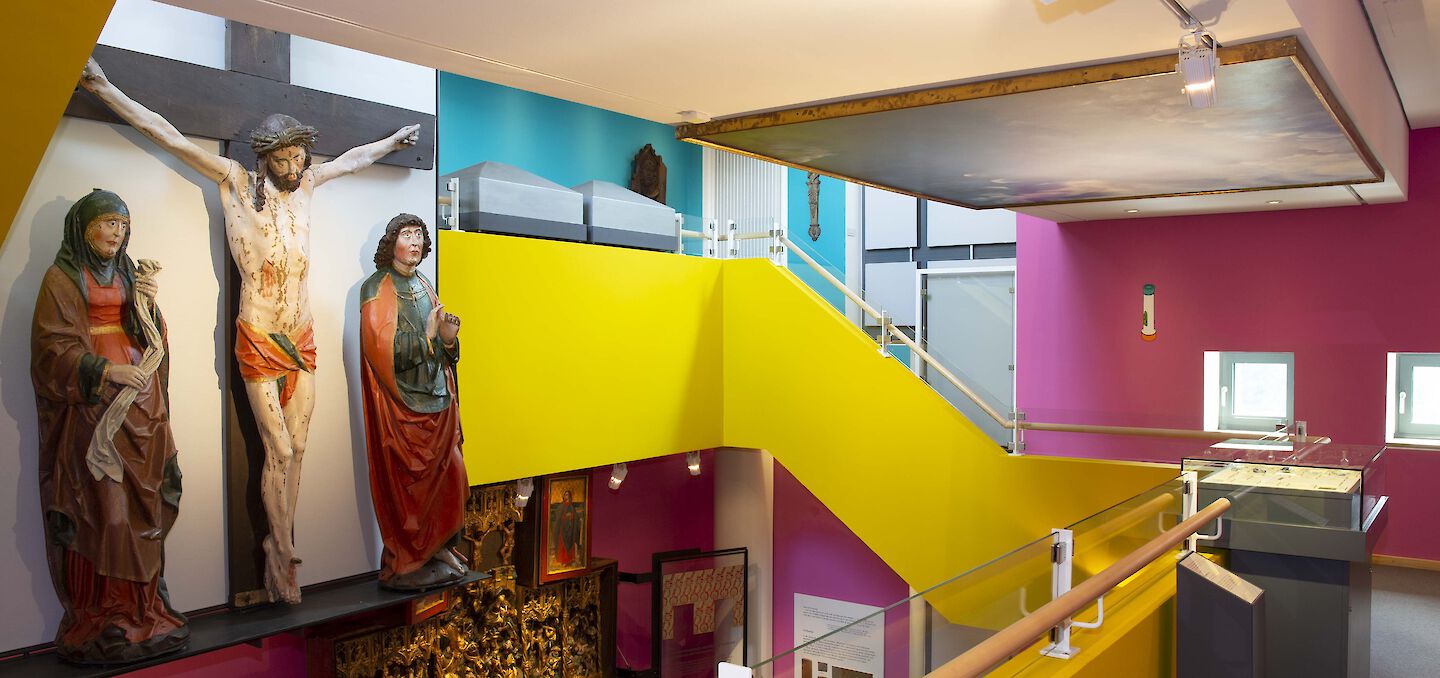 An verschiedenen Skulpturen und einem Altar aus dem 15. Jahrhundert können Veränderungen, die im Laufe der Zeit entstanden sind, nachvollzogen werden. Ein Mikroskop lädt zum Aufspüren der Reste alter Farbfassungen ein. Neben den Spuren der Materialalterung können auch Eingriffe in die Substanz der Kunstwerke nachvollzogen werden. So wurden manchmal Farbfassungen übermalt, später wieder freigelegt und restauriert oder ganz entfernt. Dem heutigen Verständnis der Restaurierung ist es zu verdanken, dass diese Veränderungen an den Kunstwerken für die Besucher*innen ablesbar sind und ihre eigene Geschichte erzählen können.