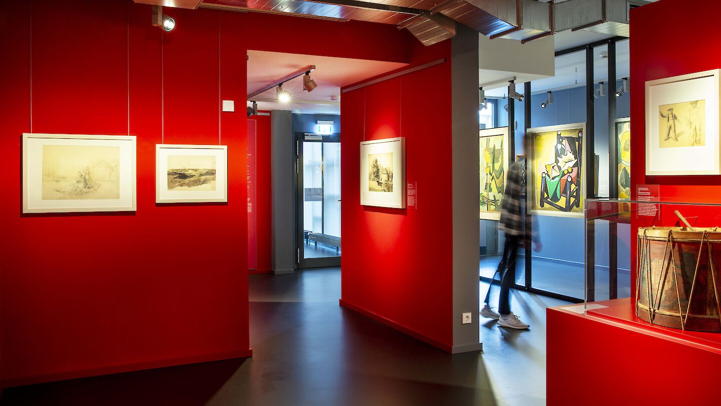 Der erste Bereich zeigt Gemälde und Zeichnungen des bedeutenden Buxtehuder Malers Hermann Martens (1910–1952), die seine kreative Auseinandersetzung mit zeitgenössischen internationalen Kunstströmungen spiegeln. Dies zeigt sich beispielhaft in seinem Gemälde „Blick auf Buxtehude von Norden“. In deutlicher Anlehnung an die Kunst der Expressionisten schuf er eine höchst dynamische Komposition. Als Motiv diente Martens die malerische Kulisse von Buxtehude mit der St.-Petri-Kirche.