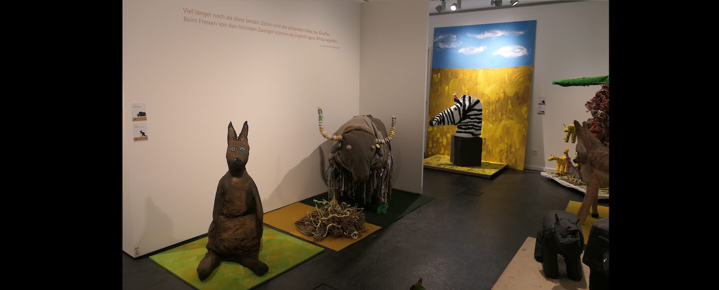 31 Schulgruppen aus Buxtehude und Umgebung – von der 1. Klasse bis zum Kunst-Leistungskurs – kommen in dieser Sonderausstellung zusammen: Inspiriert vom Stil des Schweizer Künstlers Celestino Piatti haben Kinder und Jugendliche seine Tierillustrationen in kleinen und großen Skulpturen, Bildern und Installationen neu interpretiert.