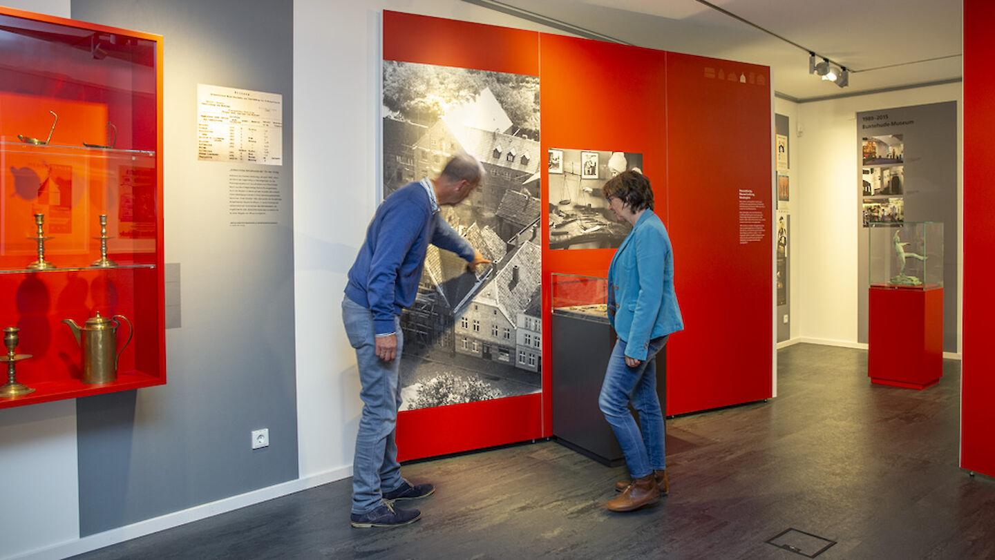 Eine Hörstation lässt die Sammlungsrettung 1911 beim großen Stadtbrand lebendig werden und ein Zeitrafferfilm verdeutlicht den enormen Transportaufwand von Großobjekten im Museum, die in den Jahren der letzten Sanierung bewegt werden mussten. Eine Bilderschau zeigt die bisherigen zahlreichen baulichen Veränderungen des Buxtehude Museums.