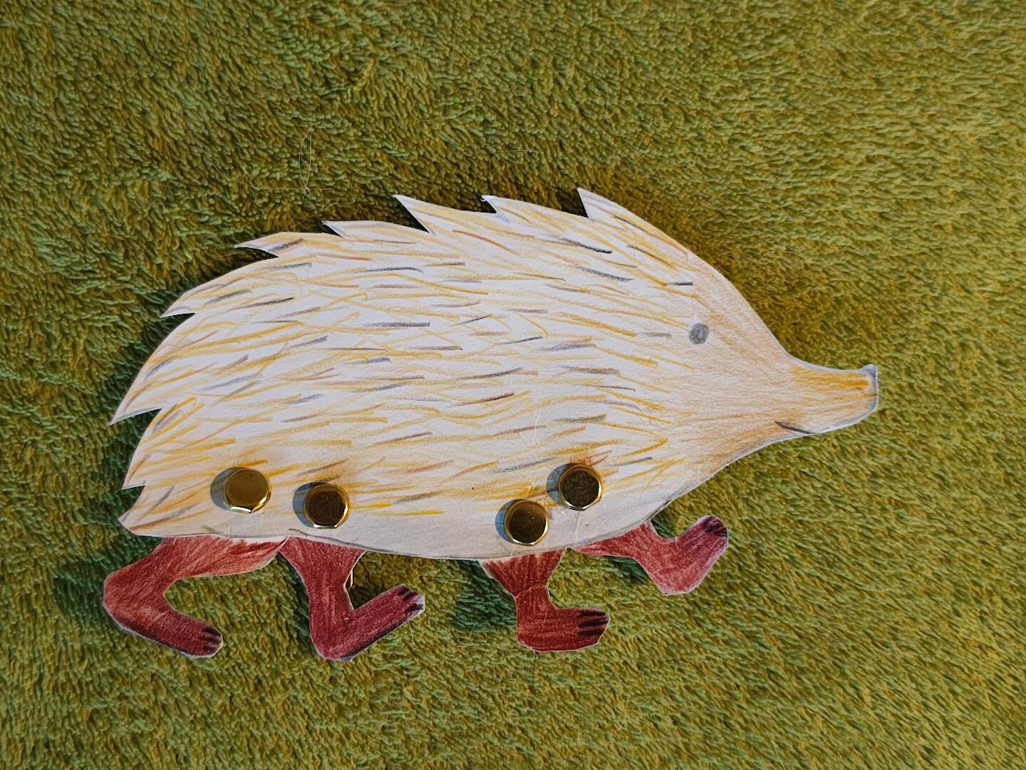 Karton, Metallklammern und Farbe – mehr braucht es nicht für originelle Tierfiguren wie Hase und Igel, deren Beine beweglich gebaut sind, als ob sie laufen könnten.