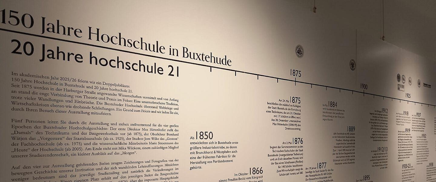 Die Ausstellung präsentiert 150 Jahre akademische Ausbildung in Buxtehude und 20 Jahre hochschule 21 – ein echtes Doppeljubiläum und Grund genug für einen spannenden Rückblick.